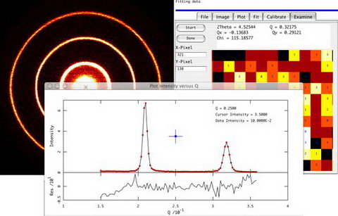 資料分析,特別適合於分析粉狀衍射資料,聚合體或液晶散射,膠體、聚合體、凝膠體