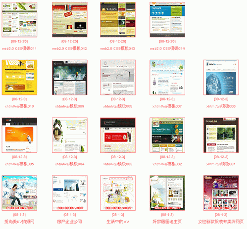 每套範本都包含了整站的首頁和多個分頁html檔,以及Flash原始檔案,設計的PSD檔,