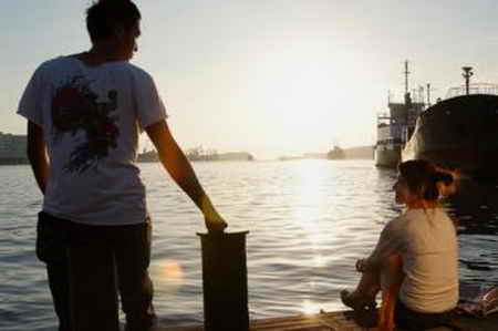 平的港都輪廓,兩人漂泊的靈魂,就如同電影配樂的琴鍵般,在酸楚和了悟的對比旋律